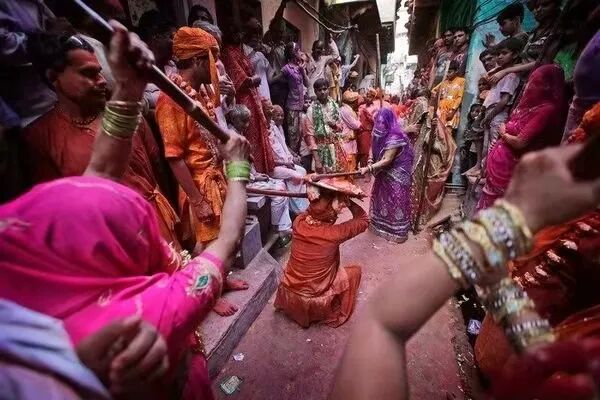 在印度,一向地位低下的妇女,每年夏季都有一个扬眉吐气的日子——“棒打男人节”(Lathmar Holi)。这一与众不同的节日主要是为了迎接多彩的春天到来。参与庆祝的男男女女,会事先在身上撒满彩粉和颜料。男人将全身涂上鲜艳的色彩,而妇女则会 穿上五颜六色的服装,头上裹着彩色的头纱,手拿竹竿“棒打男人”。男人们会用花瓣作为回击女人的“武器”。